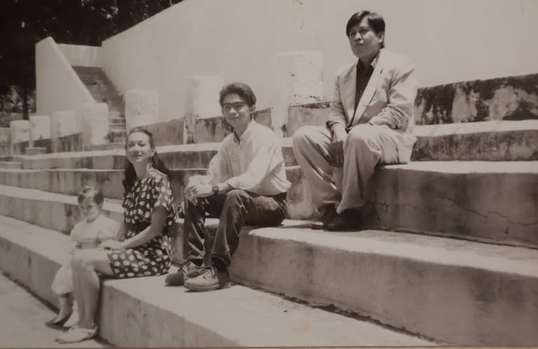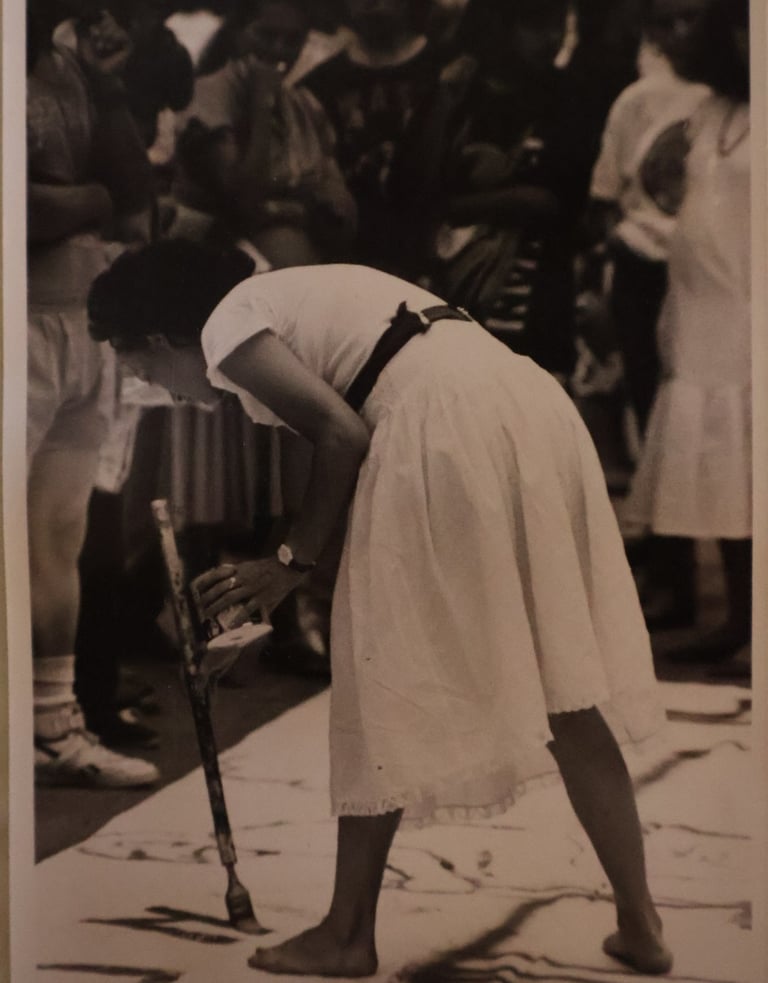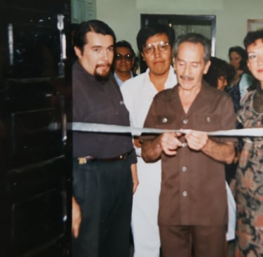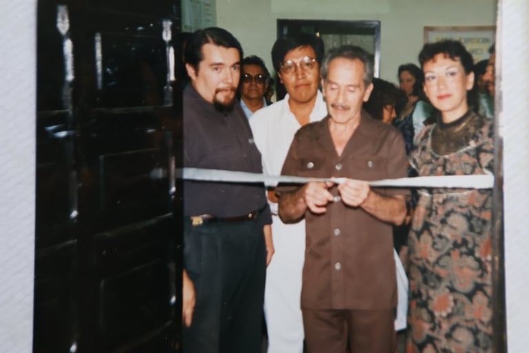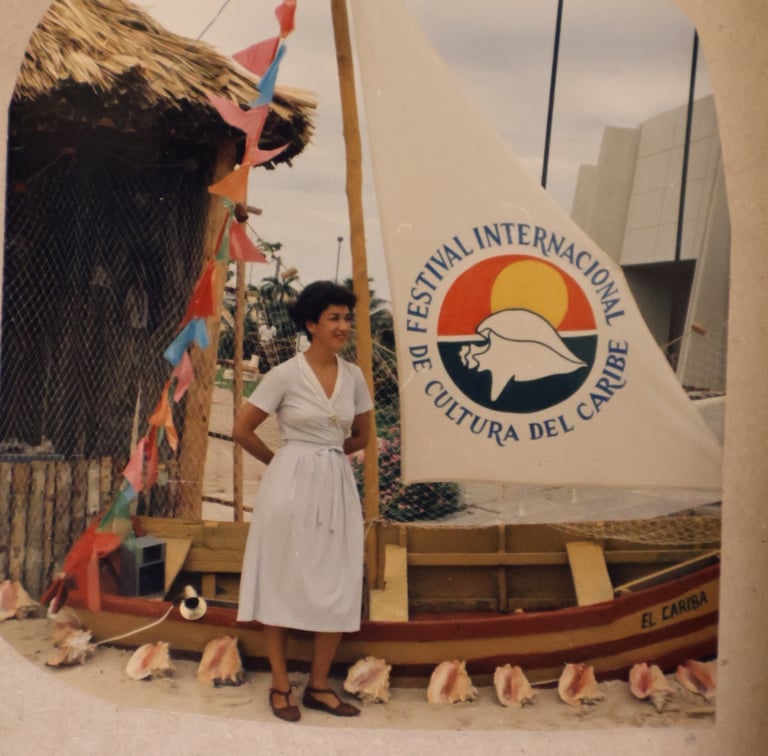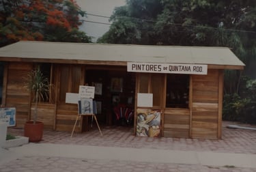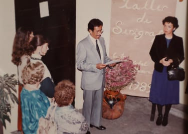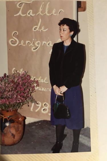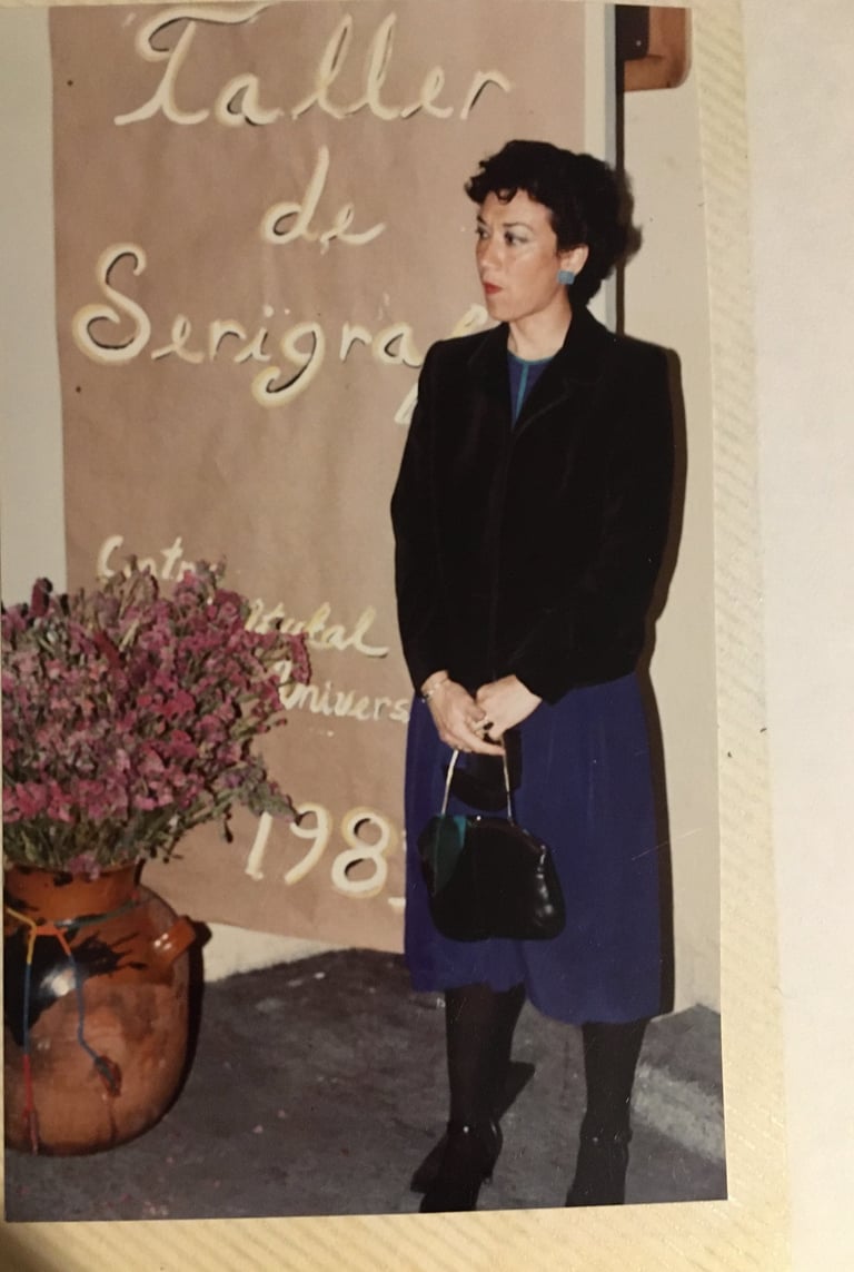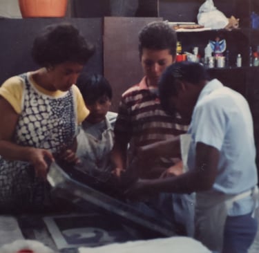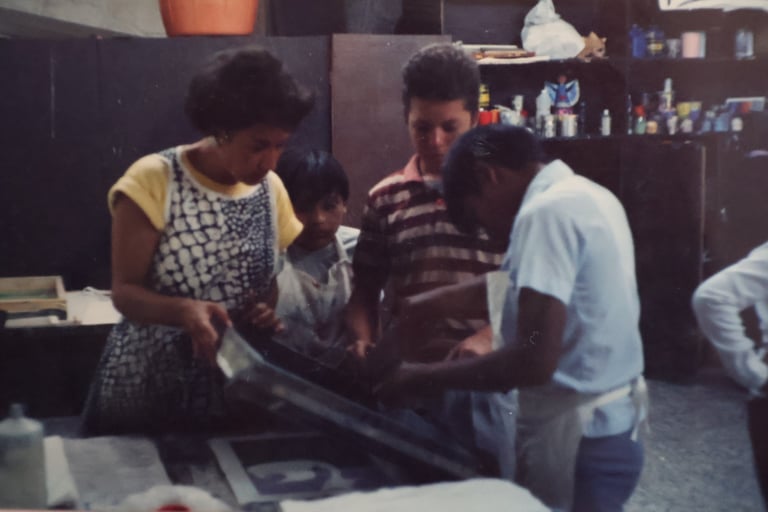 Cancún Quintana Roo, clases de serigrafia, en el Instituto Quintanarroense de la Cultura 1985-1986. Preparando la exposición de fin de cursos del taller. Maestra Pilar Sánchez Cubillas