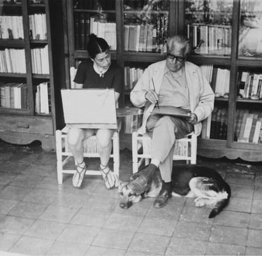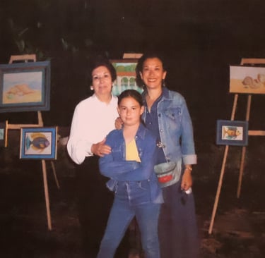 En la gran biblioteca de la casa de la familia Mesa Andraca pintando con el tío Manolo