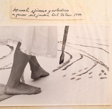 Pintando un lienzo para mural colectivo, en protesta por la destrucción del jardín del Retiro, Cuernavaca Morelos . 1990
