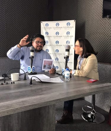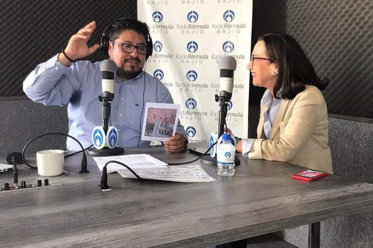En entrevista promocionando exposición Árbolijes y otros árboles en radio formula bajío.