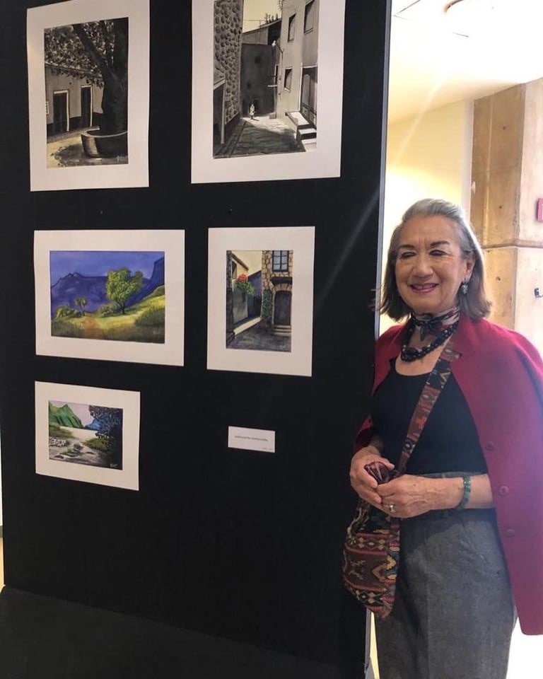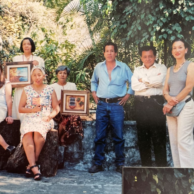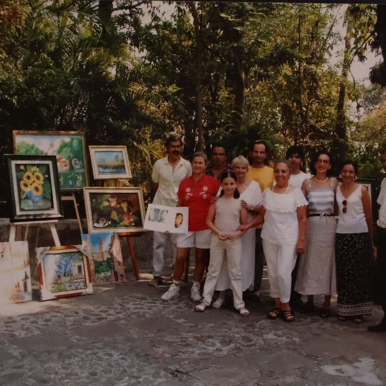 Me refugié en la acuarela y los lápices con estos recursos realicé más de 300 tarjetas de felicitaciones, hubo quien las coleccionaba. Iban firmadas y numeradas. Por esos días me obsequiaron un estuche de tubos de óleo y yo fui adquiriendo acrílicos, seguí las posibilidades que me ofrecían estos medios. Participe en varias exposiciones con los artistas de Cuernavaca, Morelos.